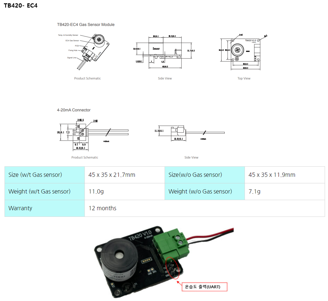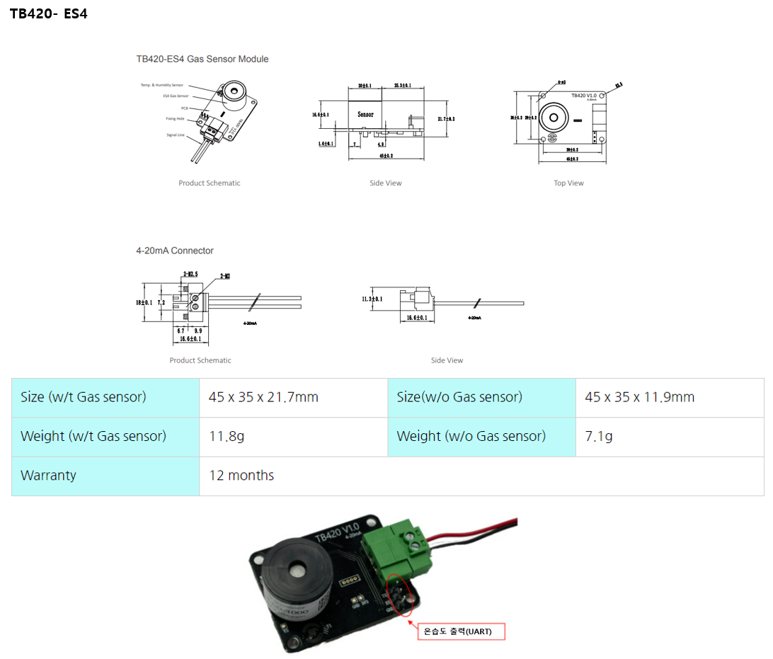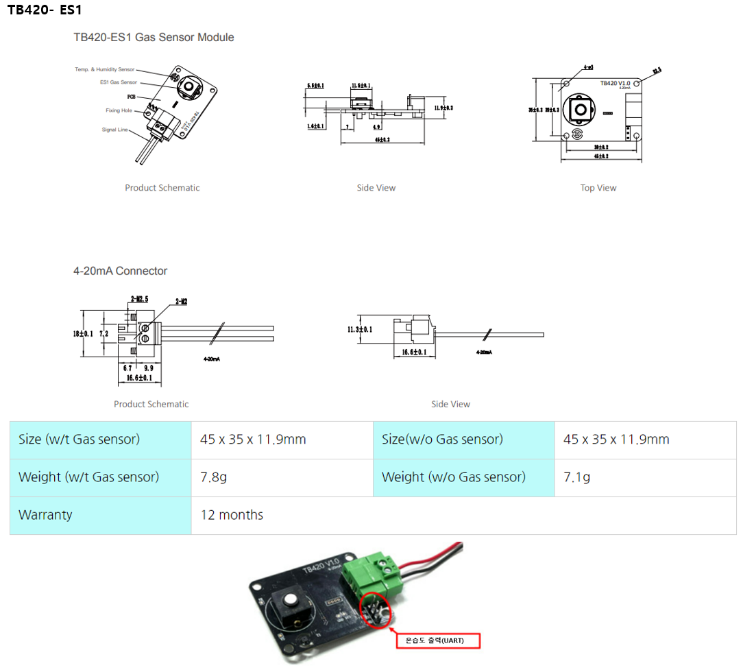 * 가스 + 온/습도 동시 측정 (단, 온습도는 digital 출력임)