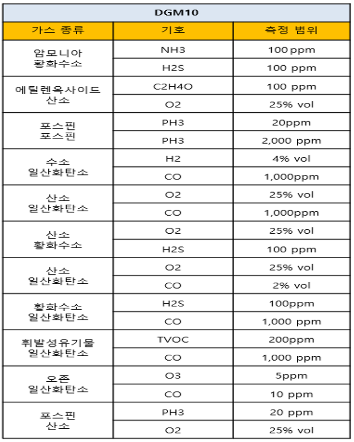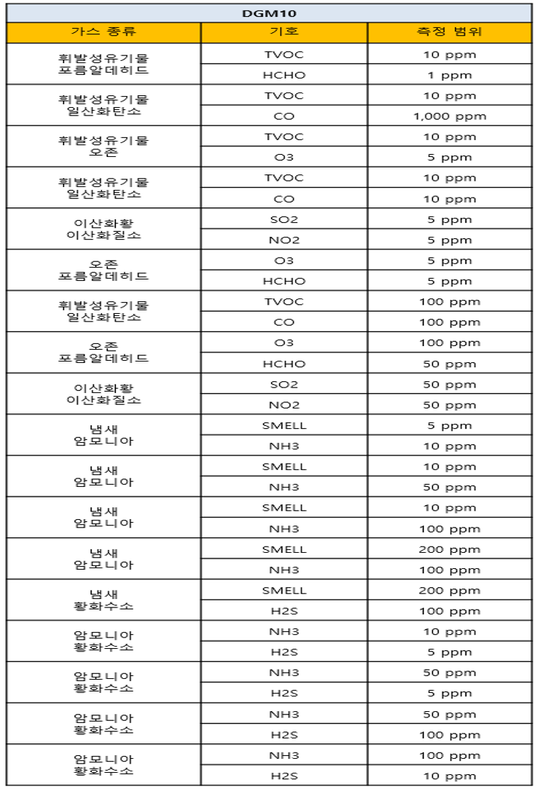 ## 측정 가스 종류 및 측정 범위