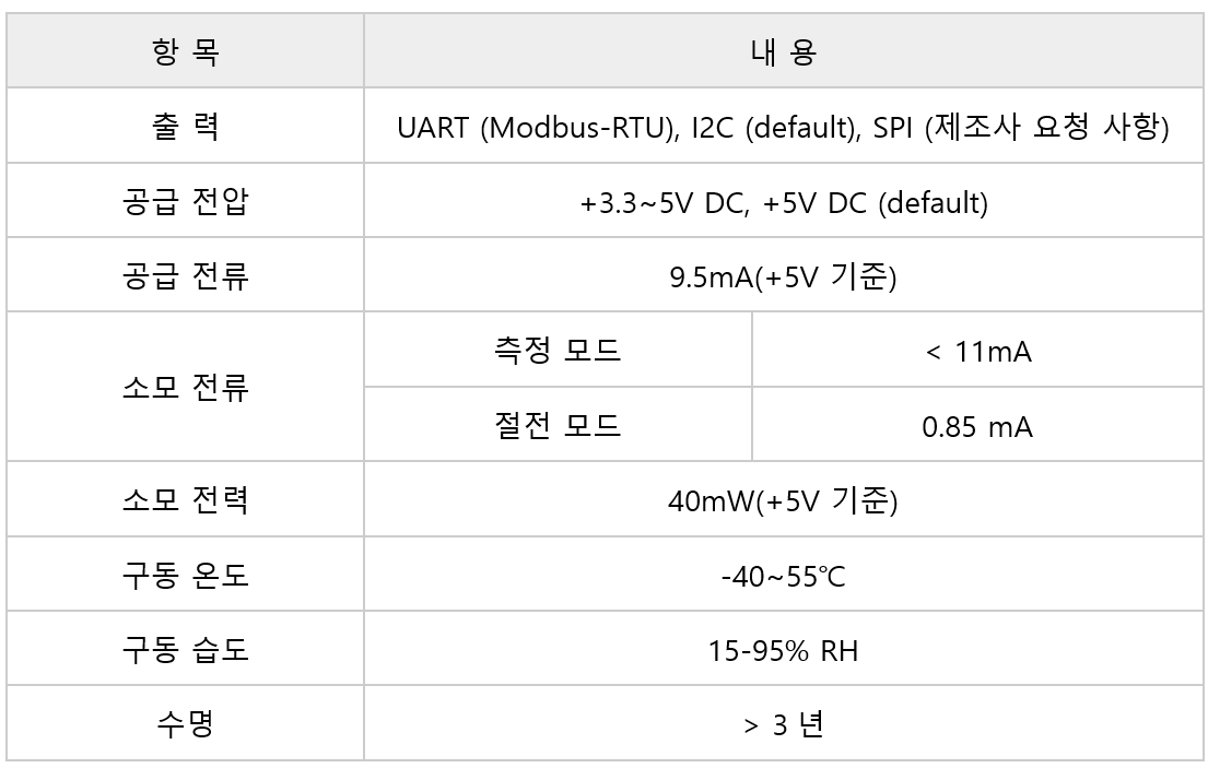 * I2C, UART(Modbus-RTUl), SPI 출력 인터페이스