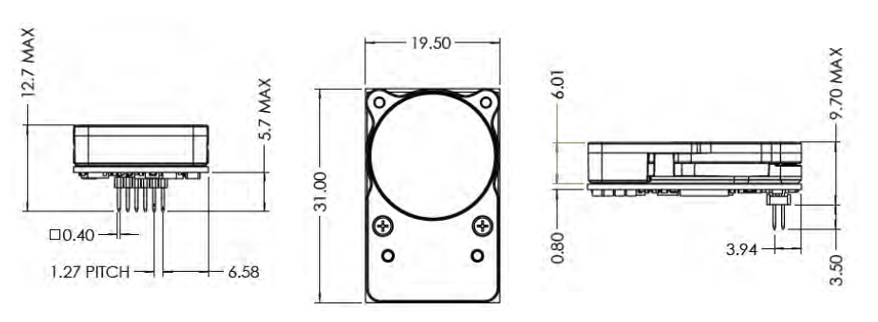 | 센서 치수 및 무게 | L x W x H(31mm x 19.5mm x 8.7mm), Weight(2.5g)                                                 |