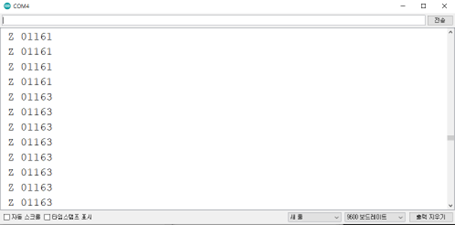 * 시리얼 모니터에 'R' 입력 후 엔터