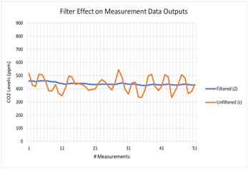 * 필터된(Filtered) CO2 값은 노이즈를 제거하여 더 정확한 값을 제공함
