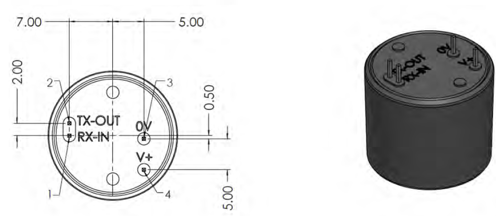 <table><thead><tr><th align="center">PIN</th><th align="center">NAME</th><th>Function</th><th data-hidden></th></tr></thead><tbody><tr><td align="center">1</td><td align="center">Rx_ In</td><td>Digital Output</td><td></td></tr><tr><td align="center">2</td><td align="center">Tx_out</td><td>Digital Input</td><td></td></tr><tr><td align="center">3</td><td align="center">GND</td><td>VSS</td><td></td></tr><tr><td align="center">4</td><td align="center">VDD</td><td>Supply vlotage</td><td></td></tr></tbody></table>