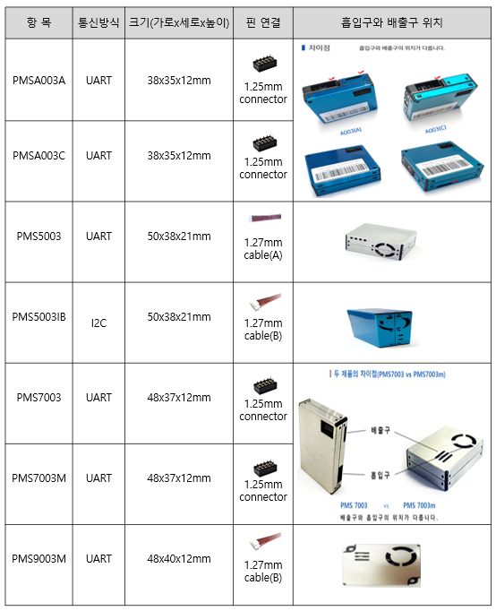 제품 크기 및 핀 특성