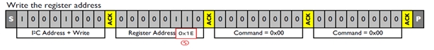 Device에서 Command((i2c Address+Write bit),0x1E(ID 상위 바이트), 0x00, 0x00)를 ETH-01D로 전송 후 120 μs 기다림